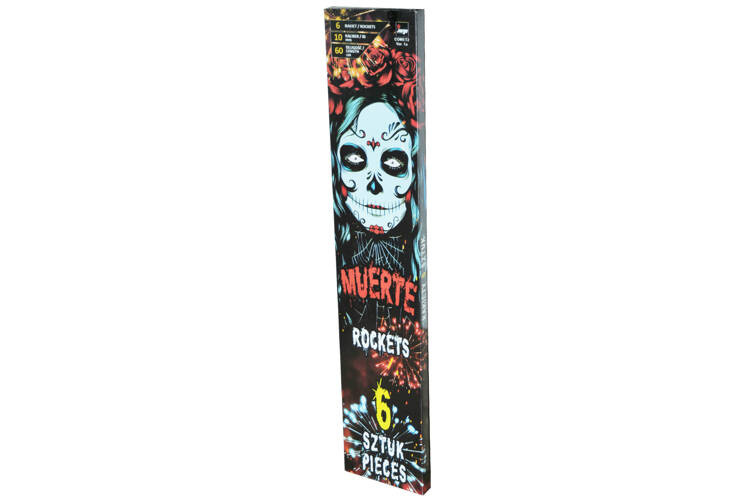 Jorge Muerte Rockets, Raketensortiment von Jorge mit 10 Stück hochwertigen Silvesterraketen. Effekt: kreischender Silberpfeif-Aufstieg mit Crackling-Bukett zu Titan-Salut.